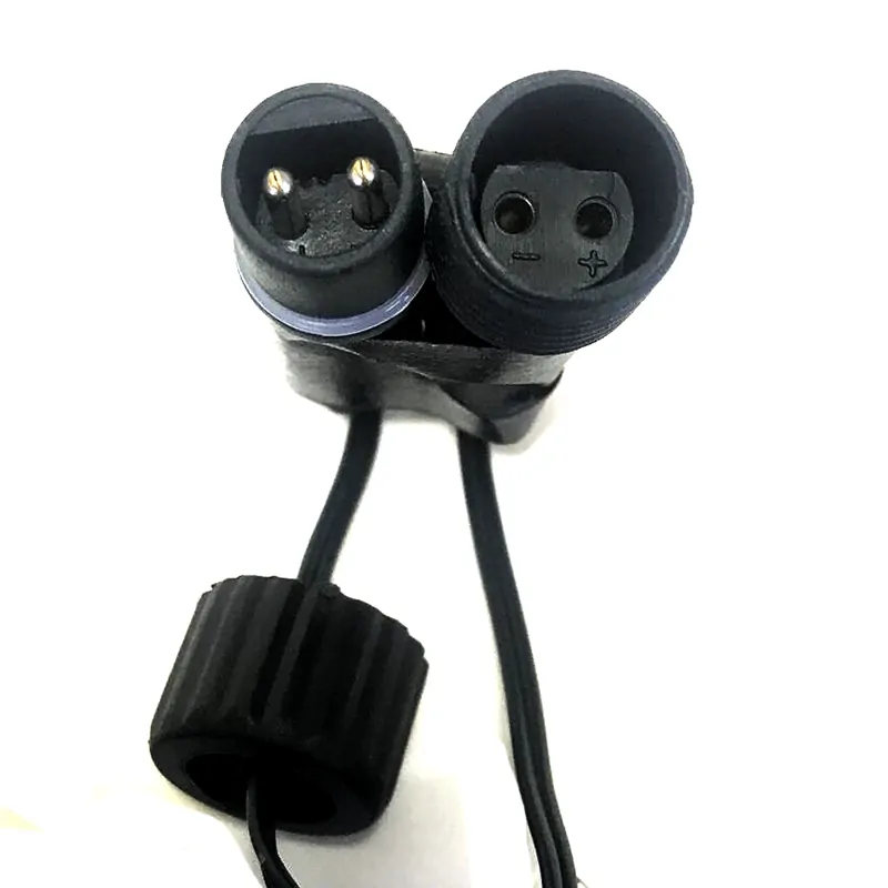 Connector has 2 pins 6mm apart and outer diam. of male plug is 13mm