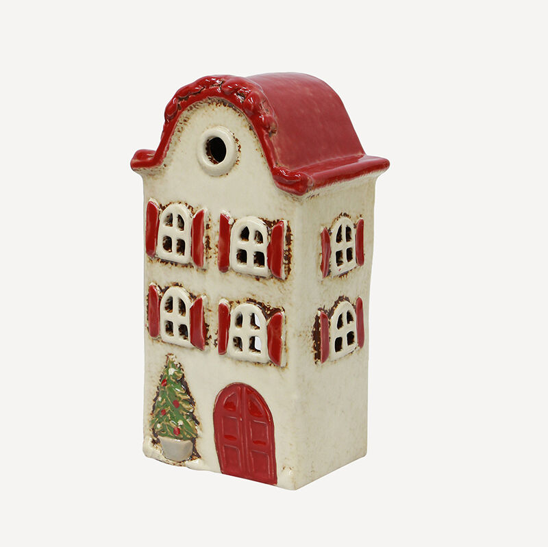 Alsace Tea Light Villa Christmas Stone with Red Shutters