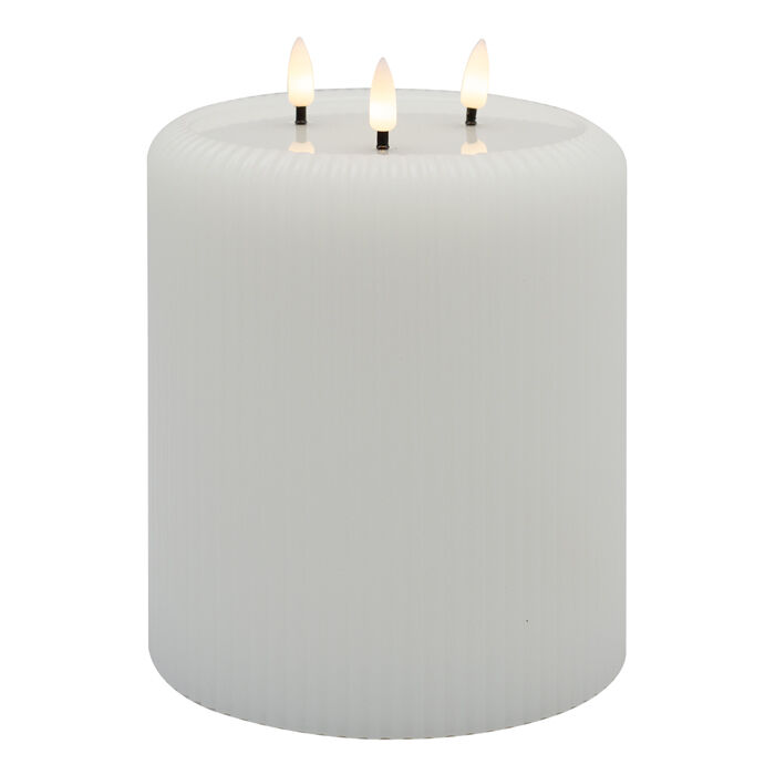 Aura LED Ribbed White Candle 15 x 20.5cm