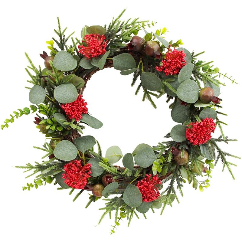 An economical artificial banksia and silvergum wreath for those looking for a bit of Australiana feel to their Christmas wreath.
