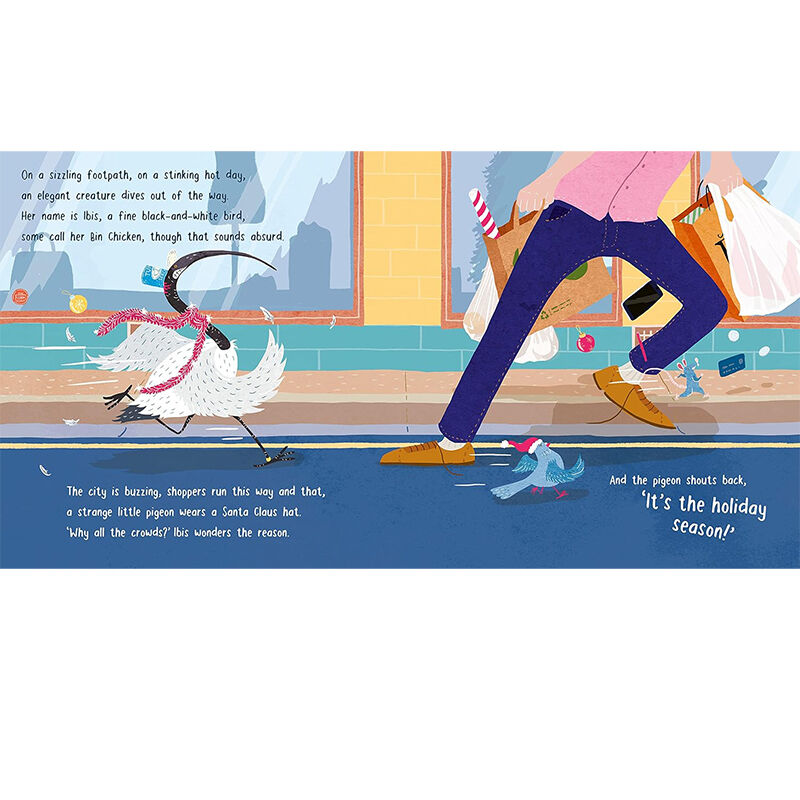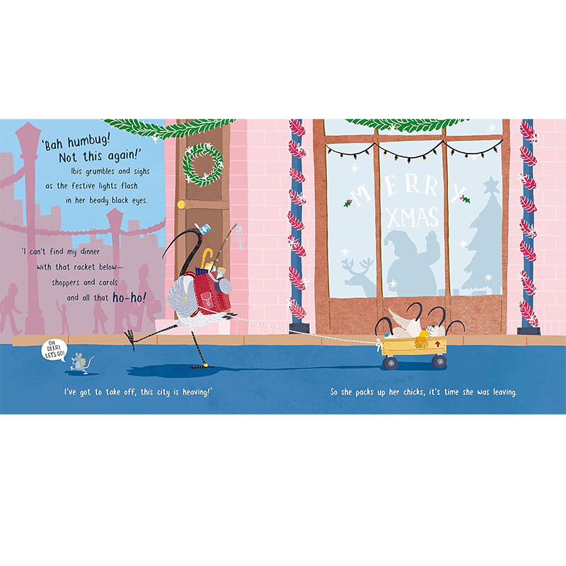 Bah humbug! The city is buzzing, shoppers run this way and that, there are carols and lights and a Santa Claus hat! But if a bird is clever... if a bird is a smartie... a bird can still have a fabulous Christmas party!