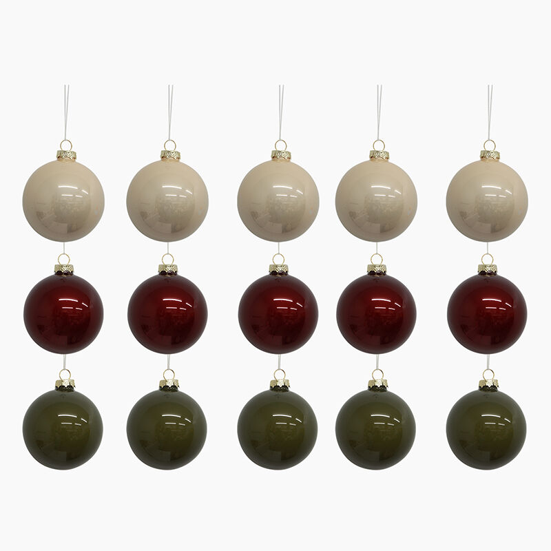Cream Olive and Burgundy 3cm Glass Christmas Bauble set