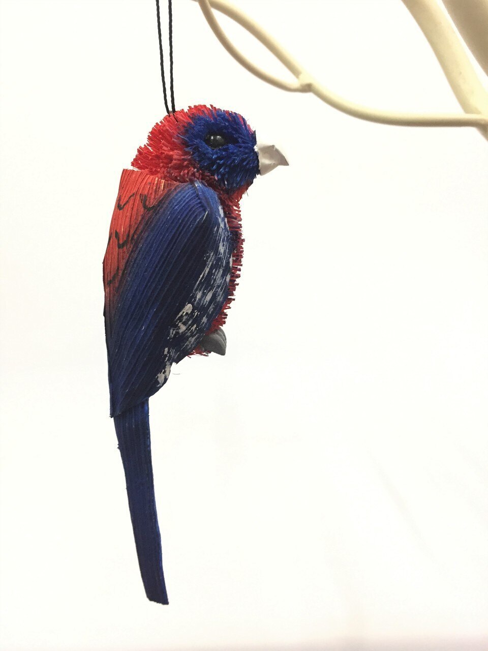 Crimson Rosella Christmas  Bristle Decoration11cm.  Add a touch of Australia to your tree.  Handpainted natural palm fibre.