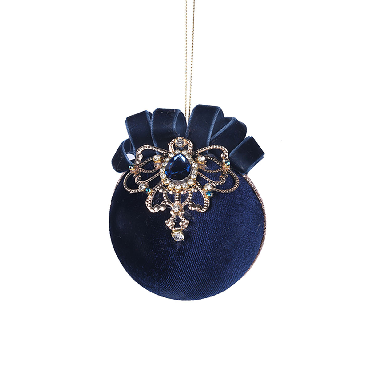 Dark Blue Velour Jewelled Small Bow Ball 8cm
