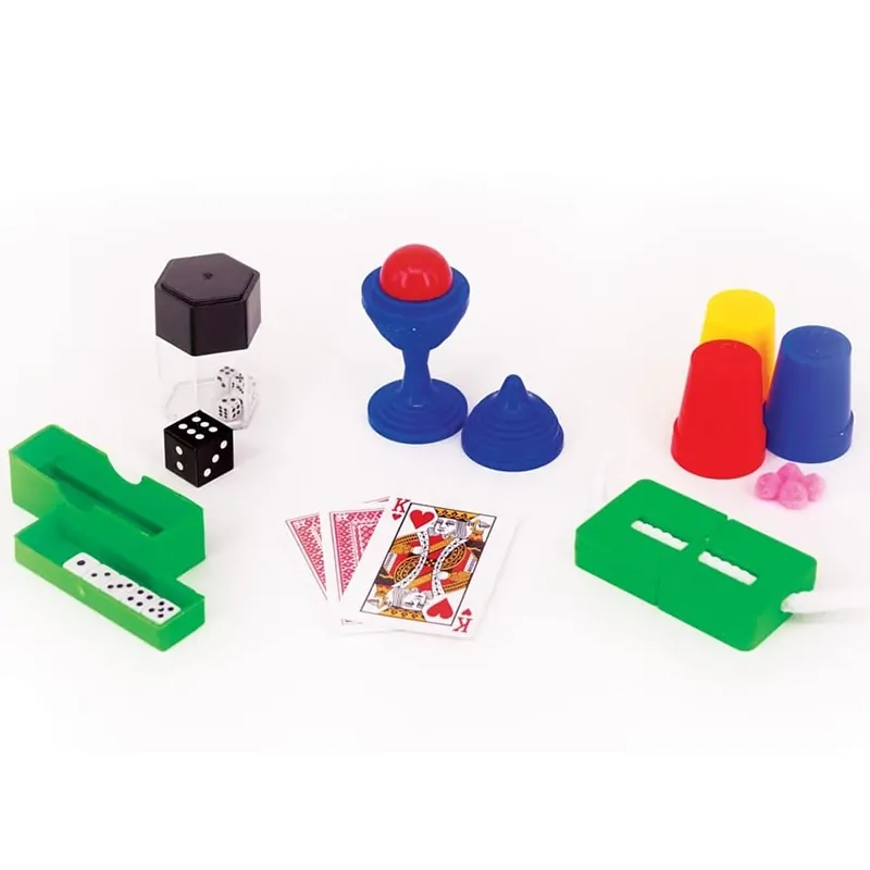 Magic Cup, Three Balls Return, Magic Poker Cards, Wonderful Dice, Magic Dice in a Box & Rope Cut.