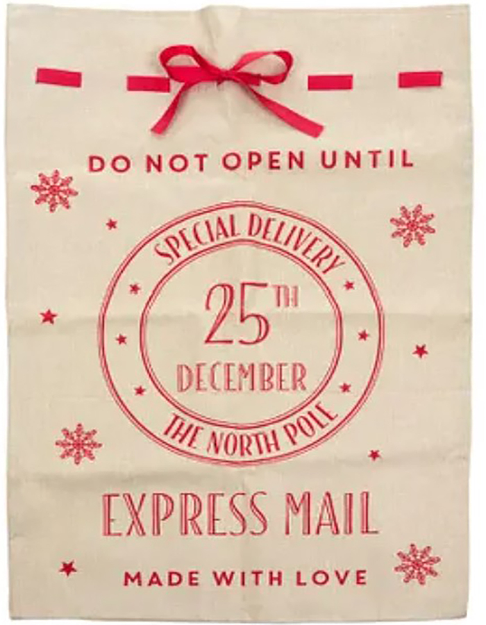 This fabric Santa sack is larger than most at 70 x 100cm.