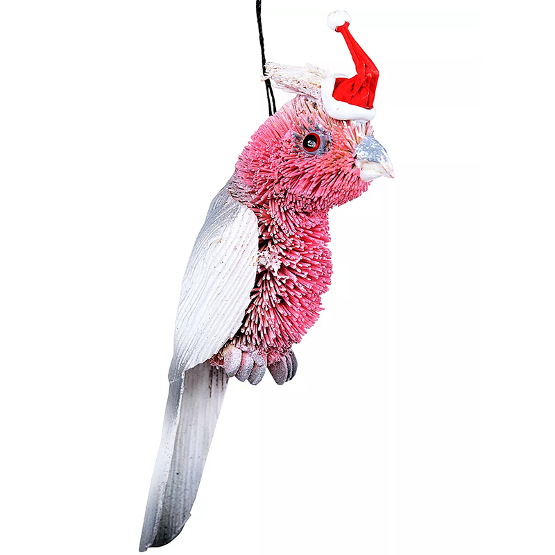 Austraian Christmas Galah Bristle Decoration with santa hat 9cm.