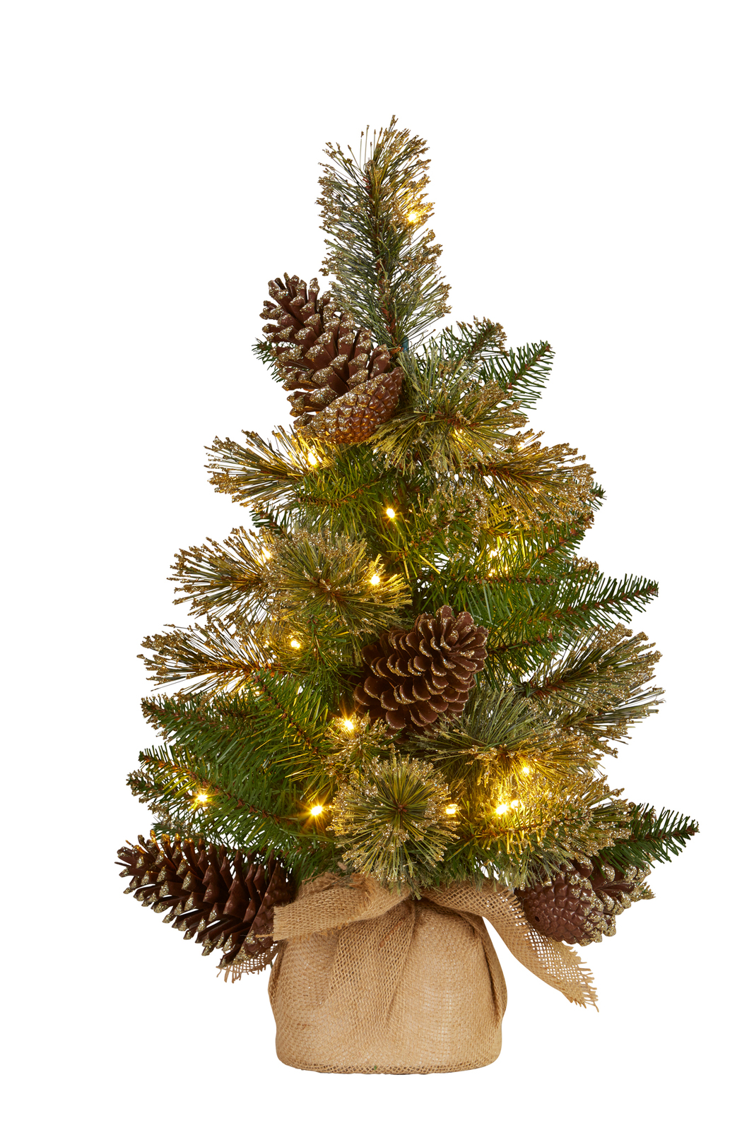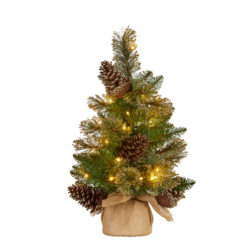 Glittery Gold Table Top Tree 61cm. 35 Warm White LED's. 3 AA batteries required and not included.