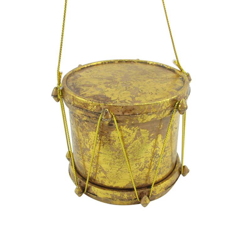 Gold Drum Hanging Christmas Decoration 9 x 7.5 cm