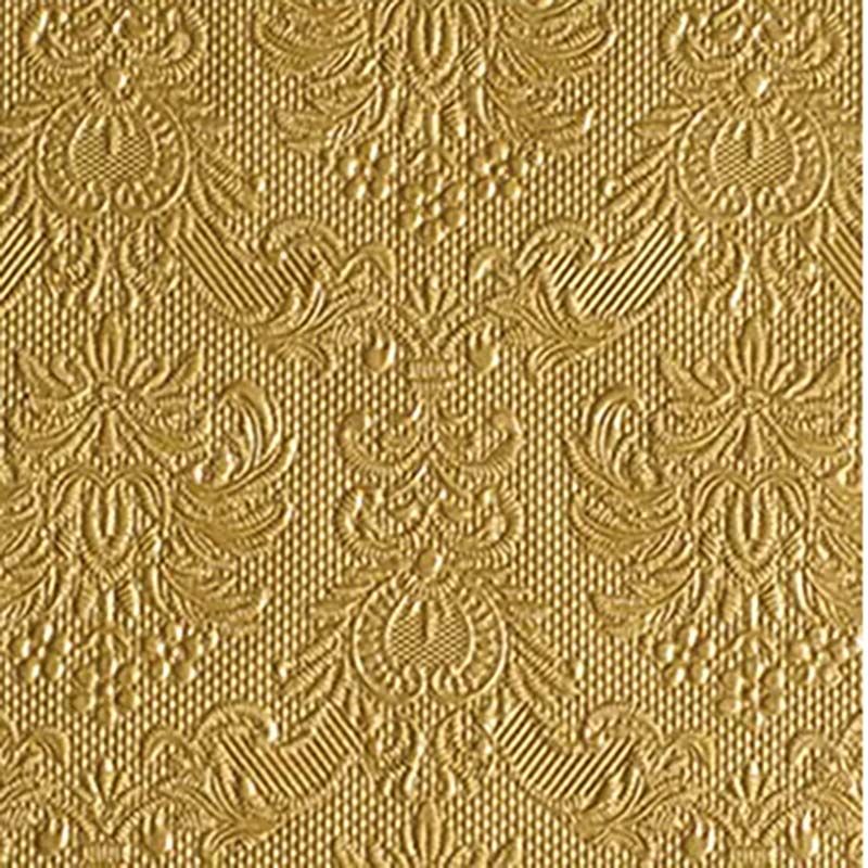 Gold Luxury Embossed Cocktail Disposable Napkins - 15pc 25 x 25 cm open. 12.5 x 12.5 folded. 3 ply. Ambiente brand. Made in Netherlands