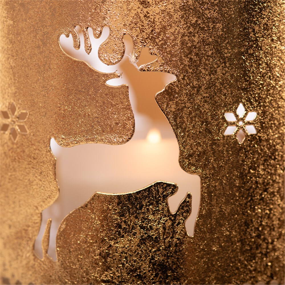 Gold Metal Christmas Candle Holder with Reindeer Cutouts.