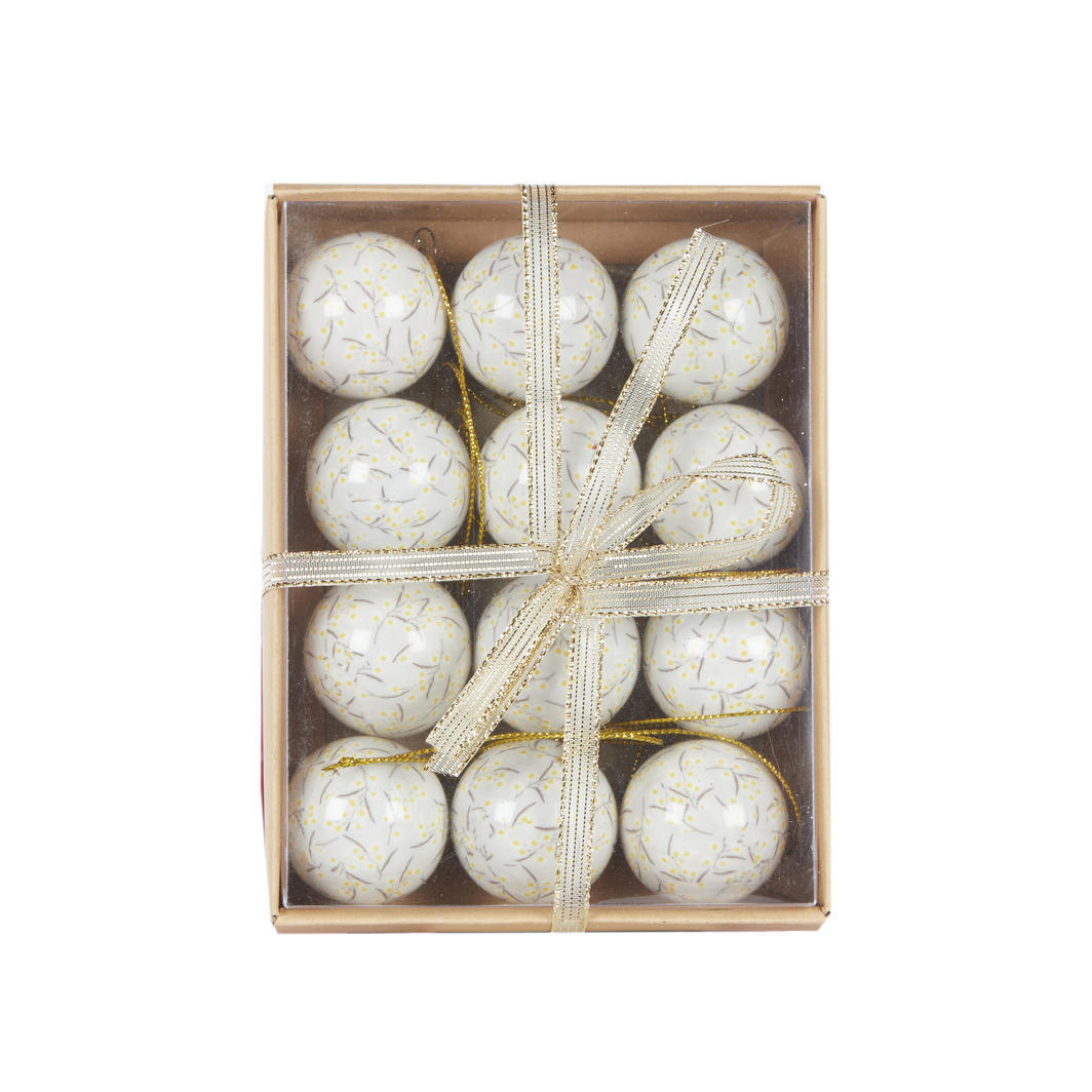 These subtle 3cm white, grey and yellow wattle baubles come in a set of 12.