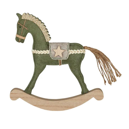 Green Felt Rocking Horse Standing Christmas Decoration