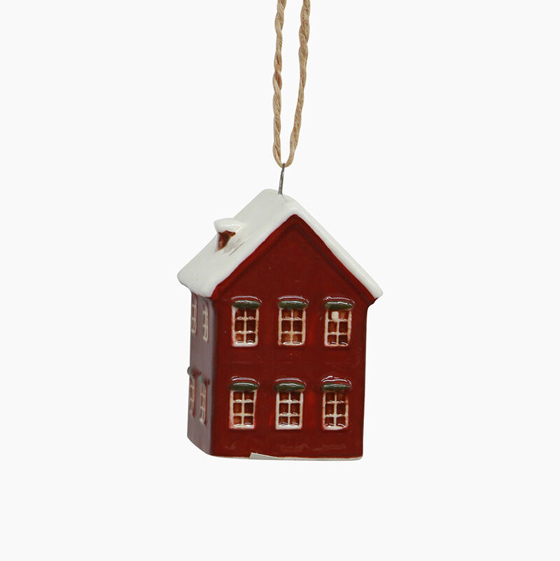 A charming ceramic hanging house ornament for your tree or any festive display.