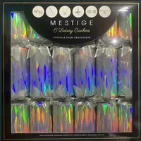 Holographic Siilver Christmas Crackers with Swarovski® Crystal Gifts - 6 Pk