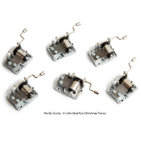Each cracker contains a music box movement that plays one of 6 Christmas tunes, hat, joke and snap.