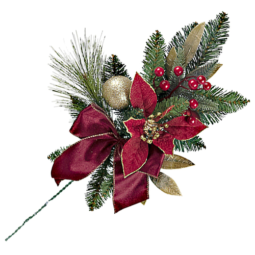 Poinsettia, with red and gold bauble, berries,and bow. 6