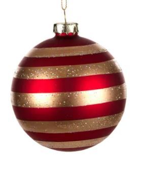 Red Gold Stripe Glass Bauble 8cm