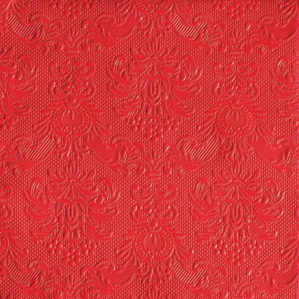 Red Luxury Embossed Luncheon Disposable Napkins - 15pc 25 x 25 cm open. 12.5 x 12.5 folded. 3 ply. Ambiente brand. Made in Netherlands