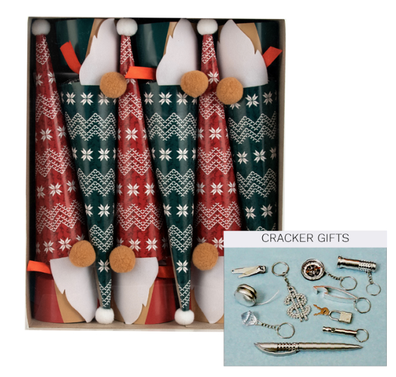 Each cracker contains gift, hat, snap and joke. Contents may vary from photos