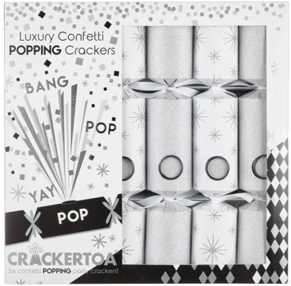 Silver Crackertoa Crackers with Popping Streamers 6pk