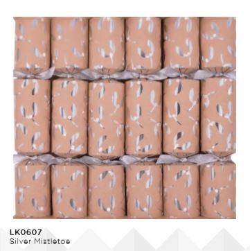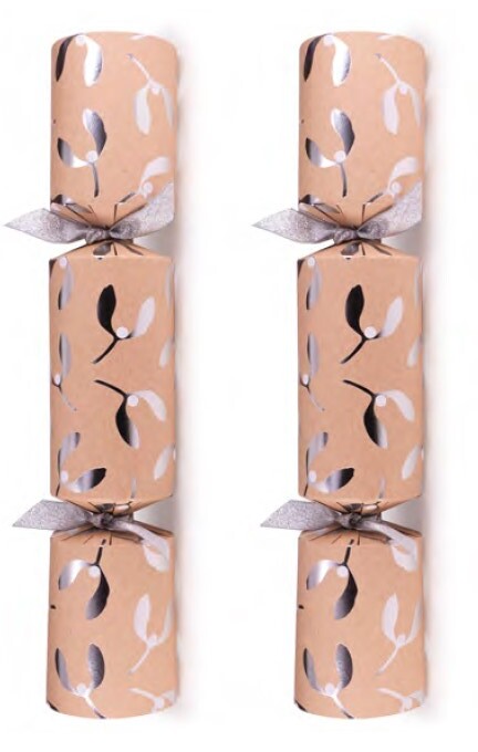 Silver Mistletoe Luxury Kraft Cracker 6 x 33cm Each cracker contains hat, snap, joke and timber gift.