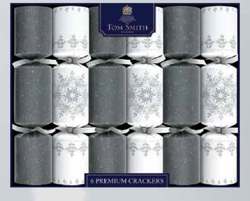 Tom Smith Silver & White Deluxe Cracker 6 x 35.5cm Each cracker contains gift, hat, snap and joke
