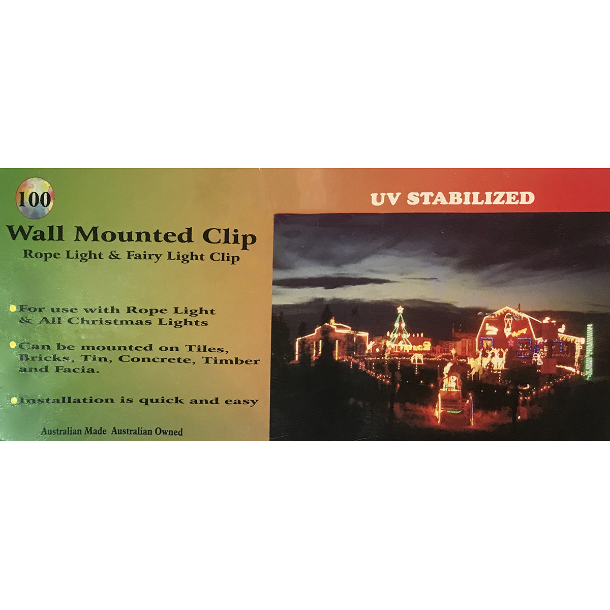 Wall Mounted Clips for LED Lights and Rope Lights - 100 Pk