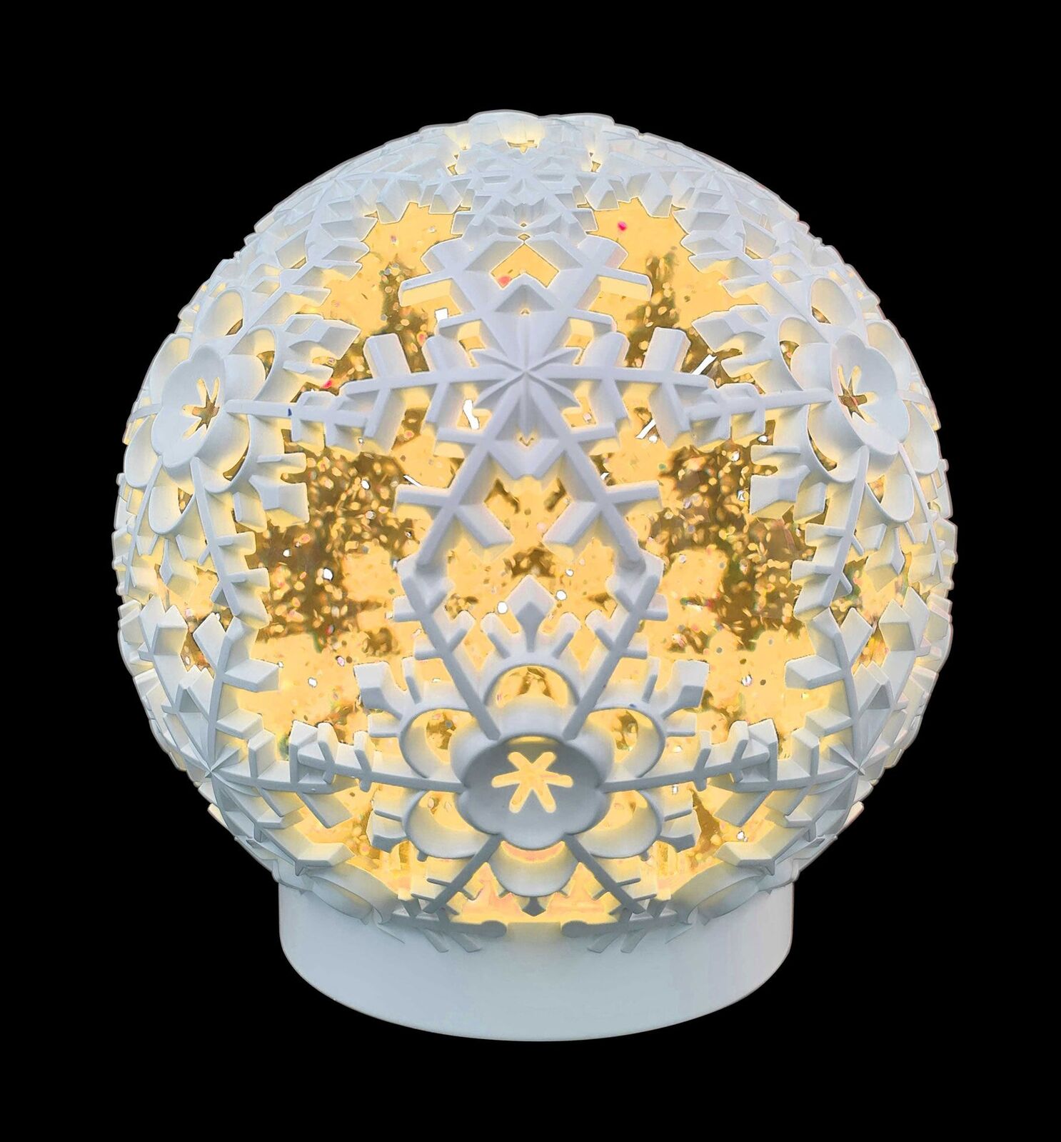 This modern version of the water globe wraps snowflakes around a clear glass globe. Requires 3 AA batteries which are NOT included.